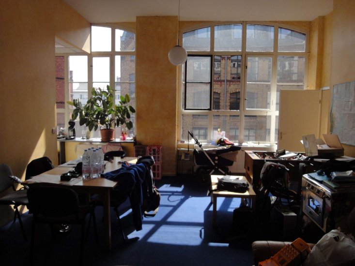 Bei Selig drüben ist die Stimmung schon top. Selig nehmen ja in einem Studio im selben Gebäudekomplex auf. Hinter den großen Fenstern auf der anderen Seite des Innenhofes sieht man langhaarige Menschen mit gereckten Fäusten herumtanzen. Was wird da gefeiert? Was für Killer-Tracks werden da eingetütet?
